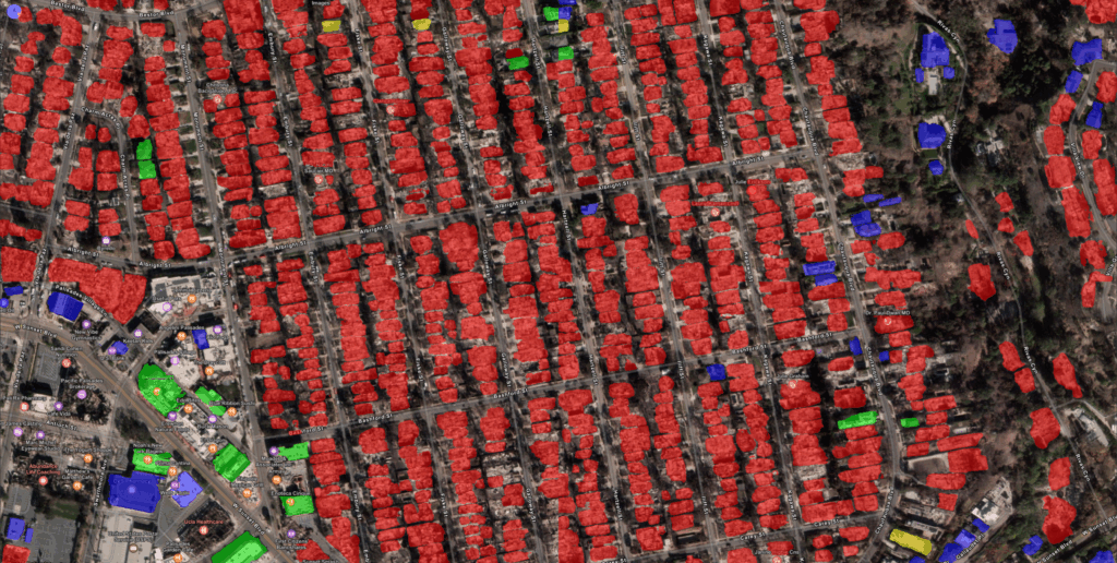 Similarly, we applied our models to satellite imagery from recent Los Angeles wildfires, where our AI showed that 92% of the buildings were reduced to rubble.